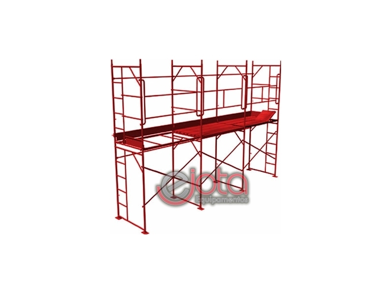 O sistema de travamento em "X" com encaixes simples e firmes, dispensa o uso de ferramentas especiais para a montagem do andaime.