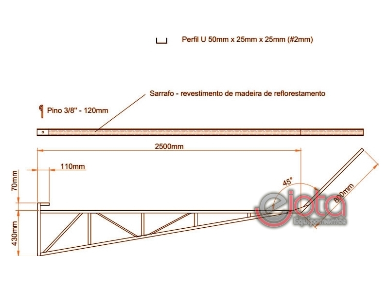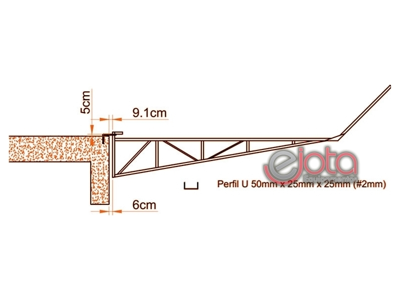 Perfil U Metálico de 2500x800x25x50x25
