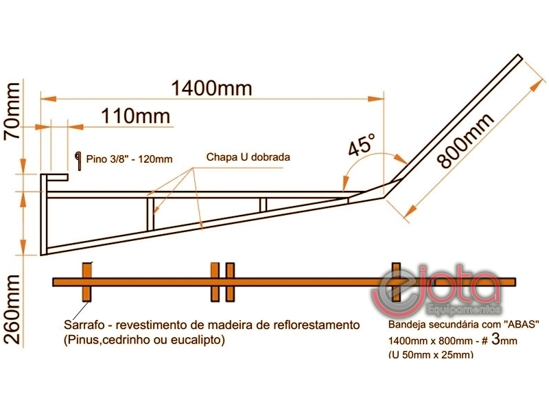 Bandeja Secundária com Abas 2,50m x 0,80m PU(25x50x3mm)