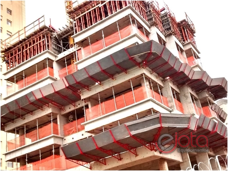 Bandeja de Proteção Secundária tipo Plataforma de segurança com abas de reforço, também conhecida por Apara Lixo Secundário, é utilizada para Proteção Coletiva durante reformas ou novas construções acima de 4 pavimentos evitando quedas de altura em canteiros de obras da Construção Civil.